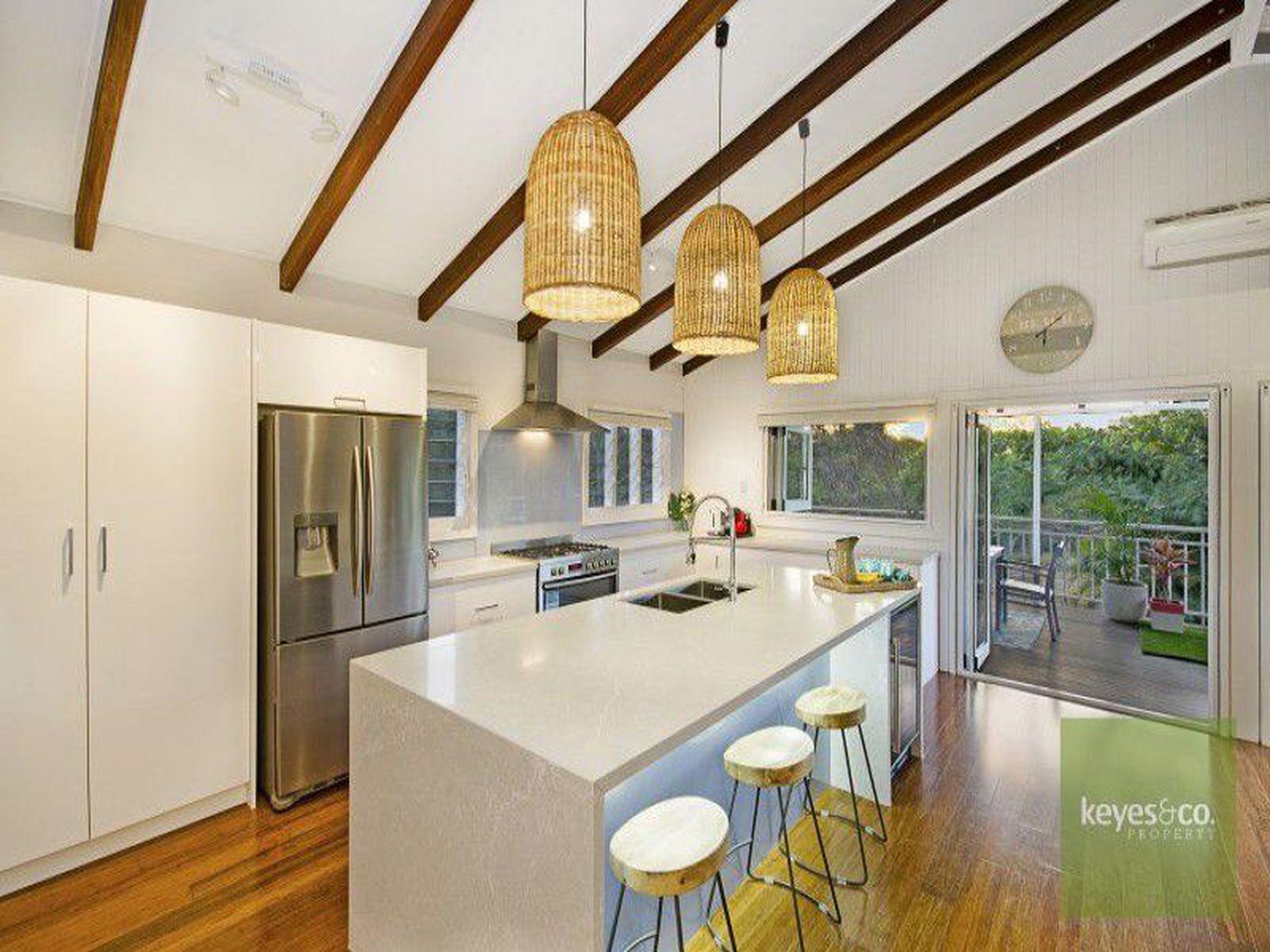 - Soaring cathedral ceiling with exposed timber beams giving a warmth to the heart of the home and fully air-conditioned