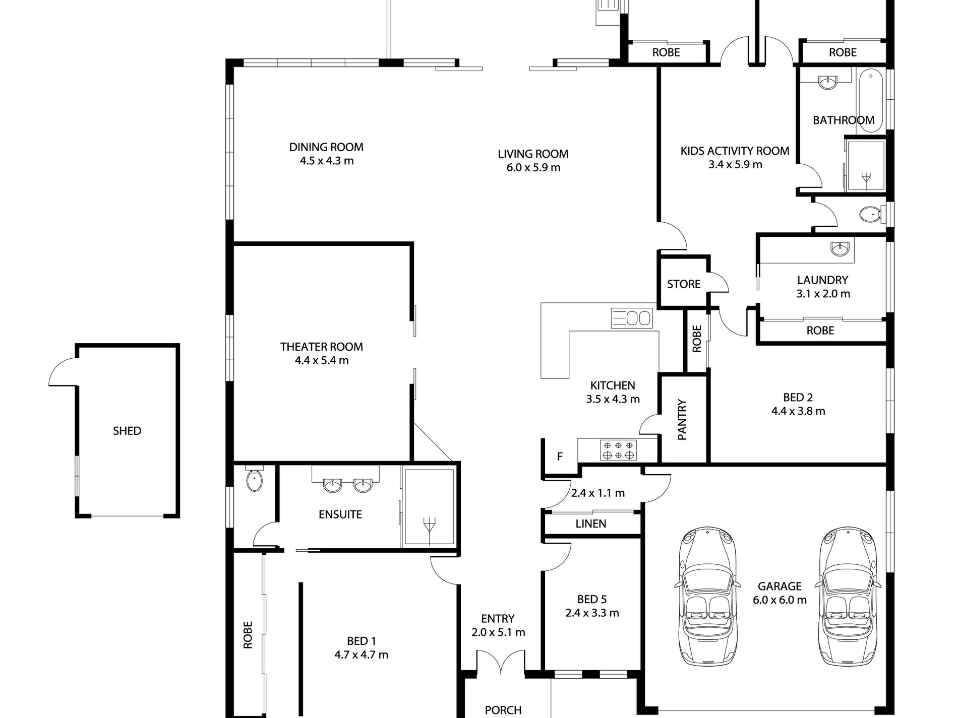 - Huge, separate home theatre/formal lounge that has provision for surround sound speakers built-in