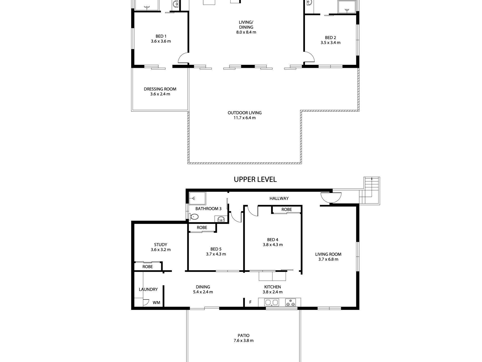 Upstairs, enjoy three bedrooms, two bathrooms, a stunning open plan living and dining area that flows to an elevated deck overlooking the city and ocean, and a chef's kitchen with butler's pantry. Downstairs, two additional bedrooms, a bathroom, full kitchen, living area, and shaded deck provide privacy and autonomy.