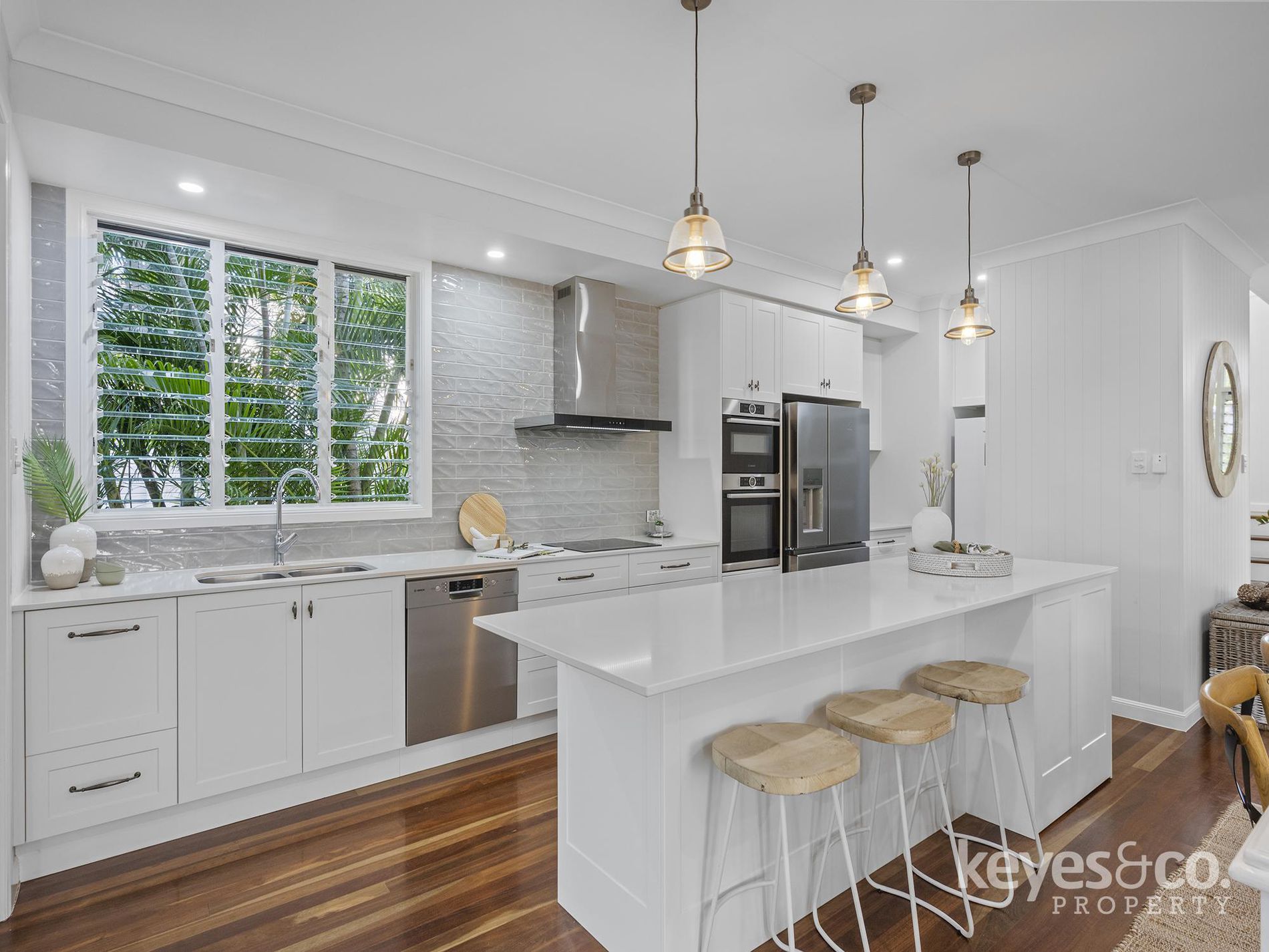 - Expansive open-plan living area with stunning timber floors and abundant natural light