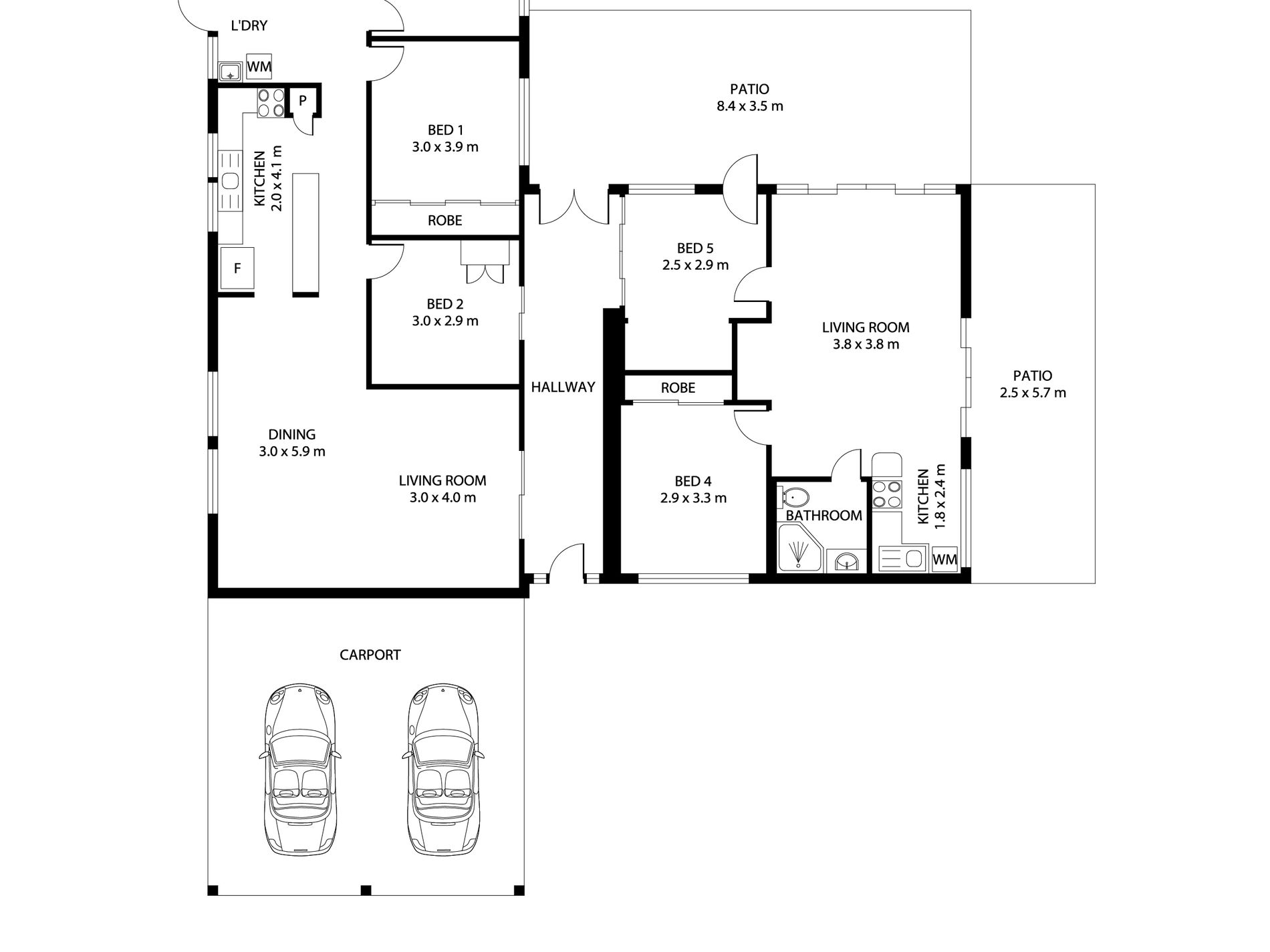 - Large front carport with undercover parking for two