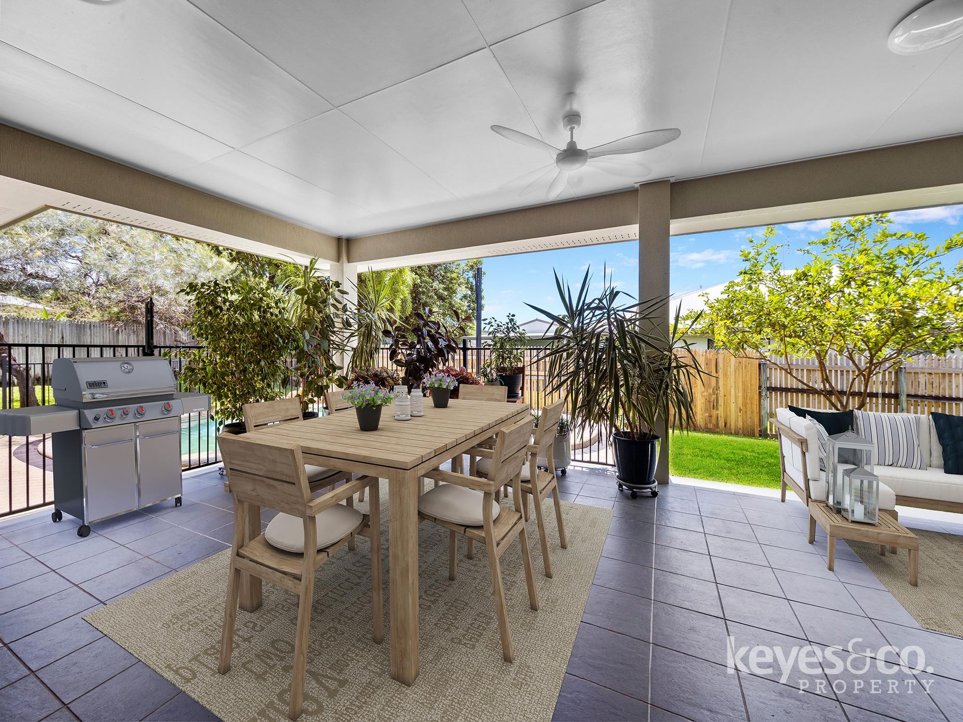 - Expansive covered outdoor entertaining area